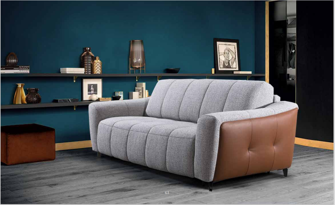 Характеристики: матеріал: двокомпонентна тканина та шкіра, металеві ніжки. Персоналізація: доступні варіанти з двох матеріалів: тканини та шкіри, тканини та мікрофібри, а також ніжок із нержавіючої сталі. Спальне місце на 160 або 120, матрас піна з ефектом пам'яті або пружинними матрацами. Практичність: відкривання через нахил спинки без зняття подушок.